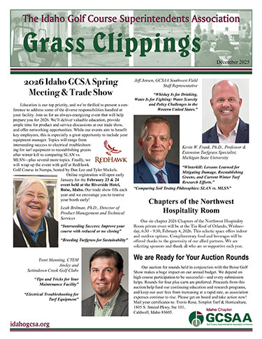 The Idaho Golf Course Superintendents Association is dedicated to helping its members provide the best playing conditions in an environmentally friendly manner.
